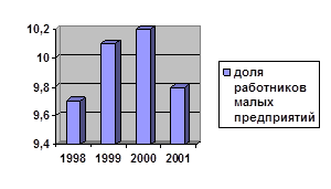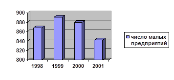 Малый бизнес – это предпринимательская деятельность, осуществляемая субъектами рыночной экономики при определенных установленных законами, государственными органами или другими представительными организациями критериях (показателях), конституциирующих сущность этого понятия. На рисунке 1 количество малых предприятий на период с 1998 по 2001 года.