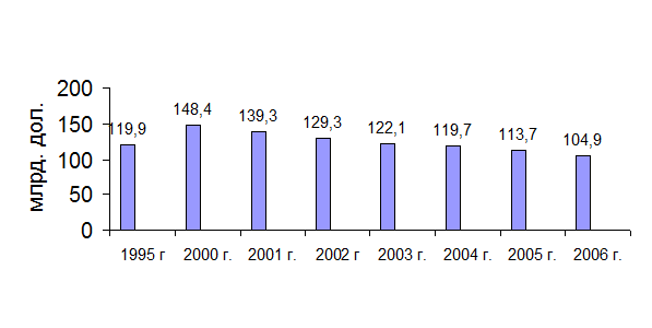 В последние годы наметилась тенденция к сокращению внешнего долга Российской Федерации. В 2000 г. он составил 148,4 млрд. долл., а по состоянию на 1 января 2006 г. снизился до 104,9 млрд. долл.
