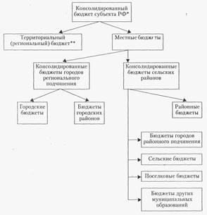 Бюджет субъекта РФ и свод бюджетов муниципальных образований, находящихся на его территории, составляют консолидированный бюджет субъекта РФ. В свою очередь, федеральный бюджет и консолидированные бюджеты субъектов РФ в сумме составляют консолидированный бюджет РФ.