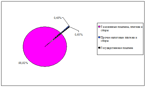 Удельный вес государственной пошлины в доходной части федерального бюджета вообще выглядит как 0%, что не дает возможности представить ее более наглядно.