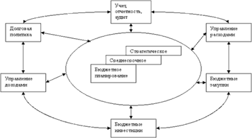 Формирование и распределение средств бюджетов на всех уровнях бюджетной системы — объемный и многоэтапный процесс, охватывающий социальную, экономическую, финансовую и другие сферы деятельности государства. В ходе формирования и распределения бюджетов анализируется и обобщается обширный материал, включающий спектр данных о финансовых ресурсах, о перспективах социально-экономического развития, об источниках доходов, направлениях расходов и др., и все это взаимоувязывается и корректируется в свете концепции бюджетной политики федерального и регионального уровней. Естественно, этот многогранный процесс требует координирующего и целенаправленного управления. Понятие «управление» или менеджмент определяется как целенаправленное воздействие управляющего субъекта на управляемый объект для его оптимального функционирования и развития.