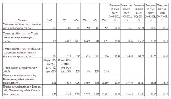 - рівня середньої заробітної плати по сільському господарству для Яготинського сільського району.