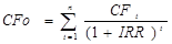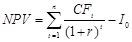 где: r - норма дисконта; n — число периодов реализации проекта; CFt — чистый поток платежей в периоде t. I0 —сумма первоначальных затрат, т.е. сумма инвестиций на начало проекта;