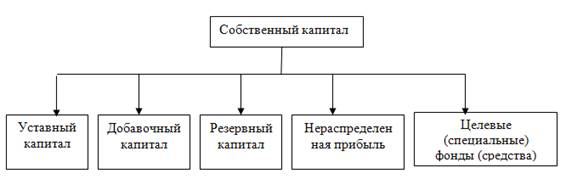 Собственный капитал организации как юридического лица в общем виде определяется стоимостью имущества, принадлежащего организации. Это так называемые чистые активы организации. Они определяются как разность между стоимостью имущества (активным капиталом) и заемным капиталом. Конечно, собственный капитал имеет сложное строение. Его состав зависит от организационно-правовой формы хозяйствующего субъекта.