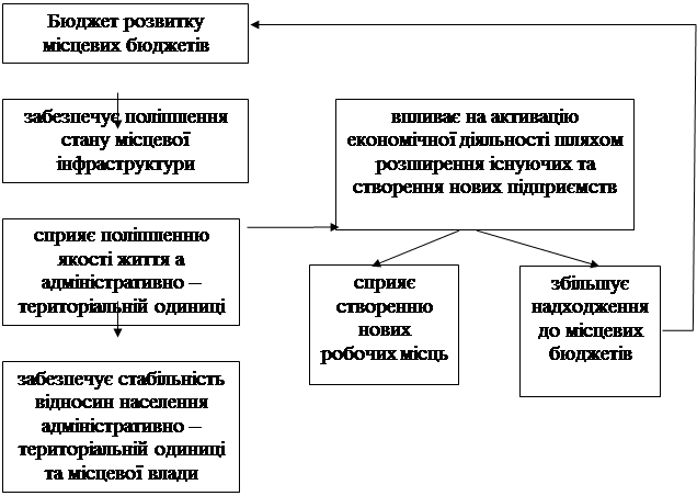 Рис.1.2. Вплив бюджету розвитку місцевих бюджетів на соціально – економічний розвиток території.