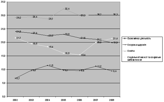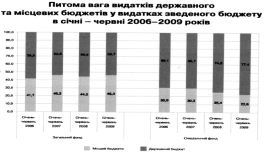 Наведені дані свідчать, що до 2001 року спостерігались надмірна централізація у витрачанні бюджетних коштів і звуження фінансових можливостей органів місцевого самоврядування, що мало негативні наслідки – значно затримувало розвиток регіонів, оскільки за рахунок місцевих бюджетів здійснюється фінансування народногосподарської та соціально-культурної сфер діяльності регіонів.