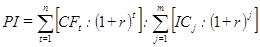Индекс рентабельности (PI) проекта представляет собой отношение суммы всех дисконтированных денежных доходов от инвестиций к сумме всех дисконтированных расходов.