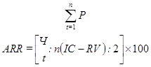 Коэффициент эффективности инвестиций ARR рассчитывается как отношение среднегодовой суммы чистой прибыли к средней величине инвестиций. Средняя величина инвестиций составляет 50% исходной суммы капитальных вложений, если по истечении срока реализации проекта все капитальные затраты будут списаны; если допускается наличие остаточной или ликвидационной стоимости, то эту величину исключают. Формула расчета коэффициента эффективности инвестиций: