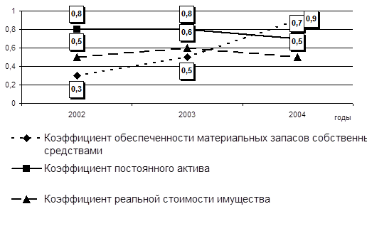 Показатели имущества производственного назначения все три года были равны рекомендуемому значению, 0,5, значит, завод не нуждается в привлечении заемных средств для пополнения имущества.