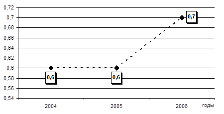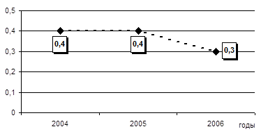 Показатели маневренности собственного капитала в 2004, 2005 и 2006 году был в пределе оптимального значения, от 0,2 до 0,5, значит, финансовое состояние предприятия хорошее.