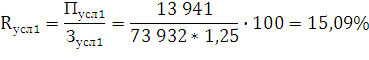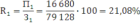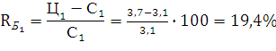 ∆Rс =R1 -Rусл3 =21,08-46,05=-24,97%