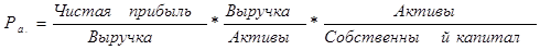 Факторы, определяющие значение и динамику данного показателя, выявляются с помощью еще одной формулы Дюпона, дающей развернутое представление рентабельности собственных средств: