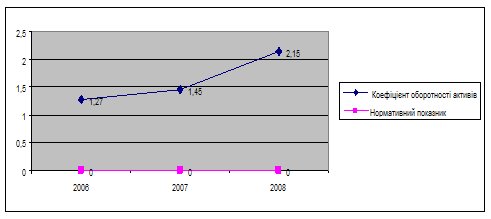 Коефіцієнт оборотності активів характеризує ефективність використання підприємством всіх наявних ресурсів незалежно від джерел їх залучення.