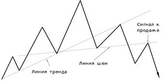 Наиболее известной и часто встречаемой разворотной фигурой является Голова и Плечи. Внешне она похожа на голову и два плеча. Предполагается, когда ценовой график опустится ниже линии шеи предпочтительно закрыть позицию. Как правило, прорыв линии шеи сопровождается значительным ростом объема торгов.
