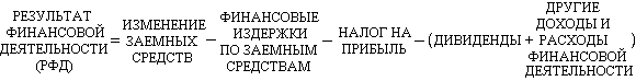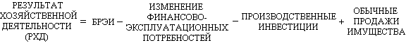 Результат хозяйственной деятельности с экономической точки зрения может быть определен как денежные средства предприятия после финансирования развития (опять западная интерпретация, но она очень хорошо “переводится” на русский экономический язык). РХД говорит о ликвидности предприятия после финансирования всех расходов, связанных с его развитием. Положительное значение данного показателя дает основания готовиться к реализации масштабных инвестиционных проектов (предприятие стоит перед скачком постоянных затрат, который в значительной мере может быть компенсирован именно положительным значением РХД). С точки зрения существующей бухгалтерской отчетности РХД тоже может быть определен. [4, с. 215]