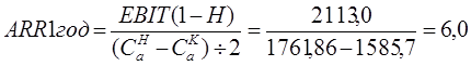 где EBIT(1-H) – доход после налоговых, но до процентных платежей;