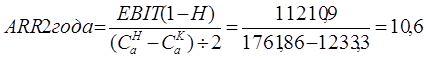 EBIT(1-H) – доход после налоговых, но до процентных платежей, в данном случае используем чистую прибыль нарастающим итогом на конец периода из 5 таблицы, т.е. на конец 1-го года в случае расчета за 1год, и на конец 2-го года, в случае расчета за 2года. Чистая прибыль как раз и будет доходом, после уплаты налоговых платежей.