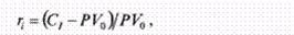 где PV 0 — значение индекса в начале исследуемого периода; С I — значение индекса в конце рассматриваемого периода. Доходность r i ведет себя как случайная величина с определенным средним r 1 и дисперсией ? r 2. Базовая доходность r 1 каким-то образом связана с доходностью финансовых активов r j, что измеряется ковариациями ? ij. В рамках модели с одним индексом предполагается, что доходности рассматриваемых активов представляются в виде