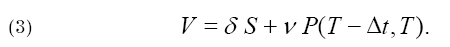 Построим для момента времени Т − ∆ t и цены акции S (т.е. для узла С) синтетический опцион из δ акций и ν безрисковых облигаций (с погашением в момент времени Т). Должны выполняться условия: