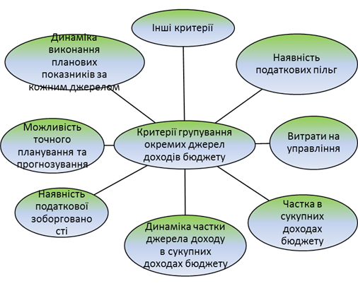 Рис. 2. Критерії групування доходів бюджету з метою управління