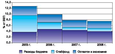 Рис. 8. Использование доходов от экспорта нефти в 2005–2008 годах