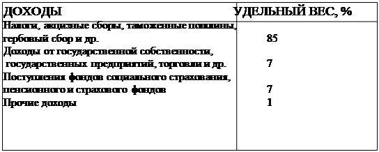 В каждой стране структура бюджета имеет свои особенности. Она определяется экономическим потенциалом страны, масштабностью задач, решаемых государством на данном этапе развития, роль государства в экономике. Состоянием международных отношений и рядом других факторов.