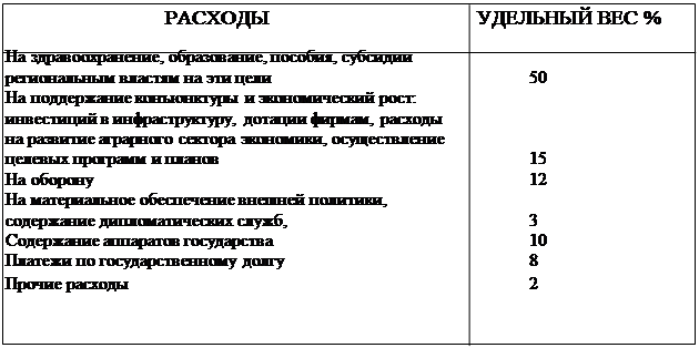 В любом государственном образовании выделяется внутренняя структура бюджета по доходам и расходам. Изобразим это схематически (см. таб. 1.).