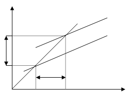 Существующий при фактическом объеме производства Q1 бюджетный дефицит KL может свидетельствовать о том, что проводится стимулирующая фискальная политика, которая сопровождается появлением или ростом бюджетного дефицита. Однако на самом деле никаких стимулирующих мер не предпринимается. Это доказывает то, что при полной занятости и тех же фактических государственных расходах и налогах (линии G и Т остаются на прежних местах) бюджет полной занятости имеет излишек МN. Таким образом, причиной фактического дефицита является спад производства. Фискальная политика, наоборот, была сдерживающей и отчасти поэтому уровень производства в стране был ниже потенциального. Возникает необходимость в принятии надлежащих фискальных мер, т.е. в стимулировании совокупного спроса.