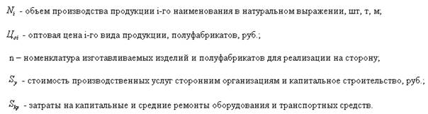 Где Nn-товар продукции по i-му изделию, полуфабрикат;