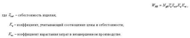 Этот коэффициент определяется отношением себестоимости изделия в незавершенном производстве Sнз к себестоимости готового изделия Sизд по формуле: