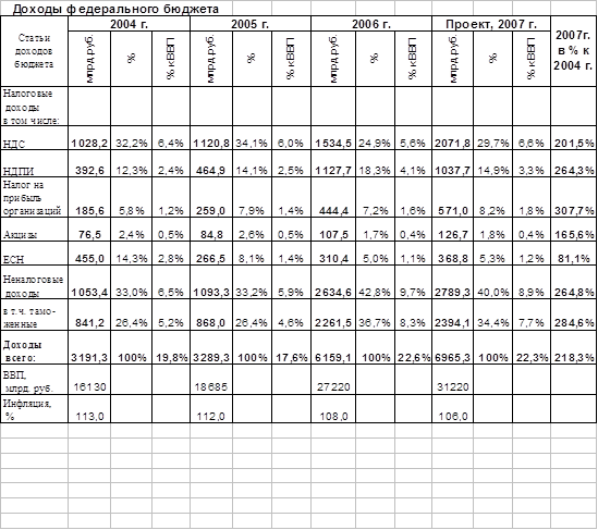 4. Сравните динамику (темпы прироста) налоговых доходов в целом и по отдельным статьям с динамикой ВВП. Сделайте вывод об изменении доли государства в макроэкономике.