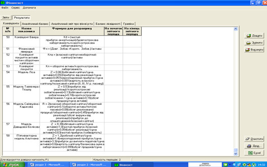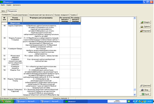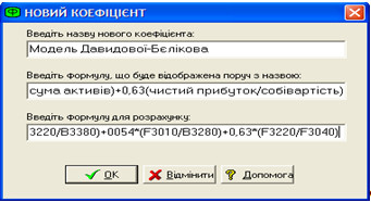 3.1 Автоматизація системи оцінки вірогідності банкрутства підприємства, що досліджується