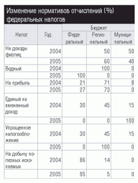 Также можно проанализировать изменение нормативов отчислений федеральных налогов в процентном соотношении (см.Приложение №7).