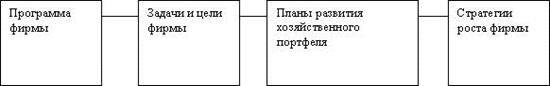 Стратегическое планирование состоит из выработки программы фирмы, формирование ее задач и целей, анализа хозяйственного портфеля и перспективного планирования роста организации.