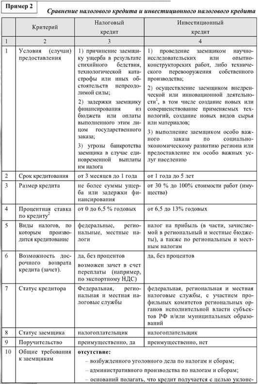 Следует также заметить, что инвестиционный налоговый кредит имеет ряд отличий от налогового кредита, отсрочки и рассрочки.
