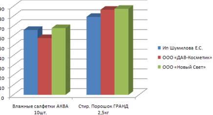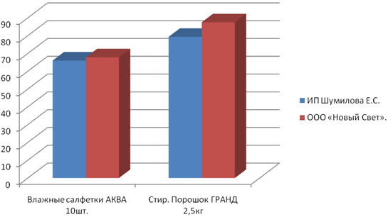 Итоги проведенного анализа цен конкурирующих фирм и индивидуального предпринимателя Шумилова Е.С. наглядно говорят о том, что на исследуемом предприятии сложился средний уровень цен в системе продаж бытовой химии, и оно прочно занимает свою нишу на данном рынке. В третьей главе работы разработан комплекс мероприятий, направленных на увеличение доходов ИП Шумилова Е.С. Предлагается следующее: