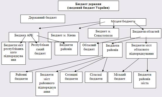Україна є унітарною державою тому вона має дворівневу бюджетну систему, що складається з державного та місцевих бюджетів. У сукупності ці бюджети становлять зведений бюджет України. Адміністративно Україна поділена на 24 області та Автономну Республіку Крим (хоча і має автономію, але її бюджет прирівнюється до обласного), які в свою чергу діляться на райони, міста, села, селища та райони у містах. Тому склад місцевого бюджету наведений у додатку 1 має трирівневий характер.