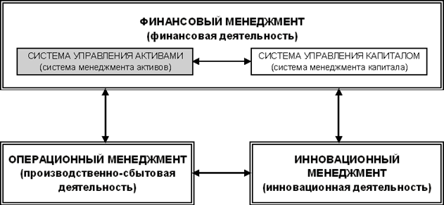 В системе управления активами существенное внимание уделяется обеспечению эффективности формирования и использования активов в операционной и инвестиционной деятельности, и совершенно естественно, что система управления активами связана с двумя другими системами управления предприятием: