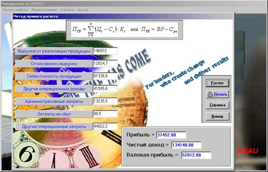 Методи прямого розрахунку. Суть методу прямого розрахунку полягає в тому, що маючи інформацію про обсяги виробництва товарів і послуг на плановий період, поточну ціну на цю продукцію та її повну собівартість визначається прибуток на всю вироблену продукцію: