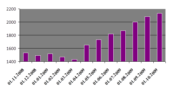 Рис. 1. Динамика индекса Nasdaq Composite с ноября 2008 года по октябрь 2009 года