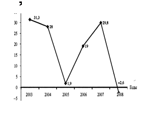 Рис. 5. Украина: годовые темпы прироста инвестиций в основной капитал в 2003-2008 гг.