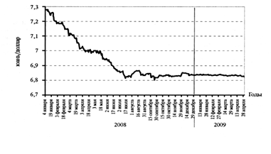 Рис. 9. Динамика курса юаня относительно доллара в 2008-2009 гг.