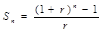 Для вычисления будущей стоимости аннуитета используется коэффициент наращения аннуитета Sn , который рассчитывается по формуле: