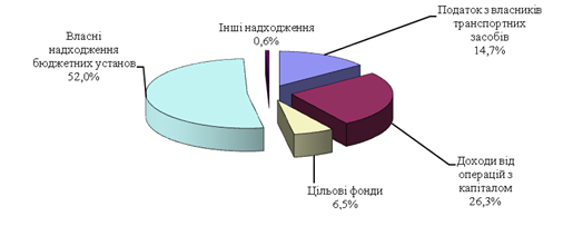 Структура надходжень спеціального фонду бюджету міста за 2009 рік (без трансфертів)