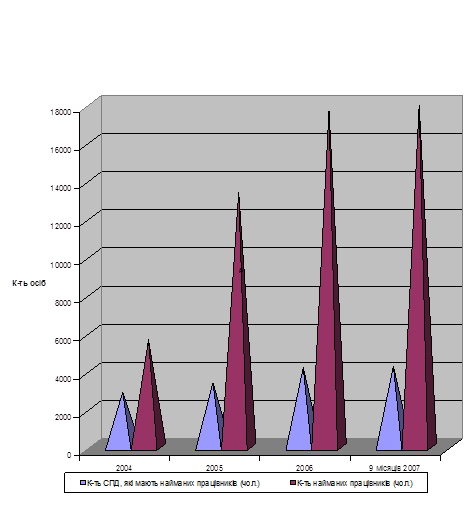 Розвиток підприємництва спостерігається і в тому, що зросло використання найманої праці суб’єктами підприємницької діяльності – фізичними особами, платниками єдиного податку. Все більше підприємців поширюють свою справу, тим самим створюють нові робочі місця. Якщо спочатку наймані працівники працювали за домовленістю, без реєстрації в органах пенсійного фонду, фонду зайнятості, фонду соціального страхування, а за даними звіту за формою 8-ДР заробітну плату не отримували, то зараз більшість приватних підприємців реєструють найманих працівників згідно чинного законодавства, і сплачують заробітну плату не менше встановленого мінімального розміру.