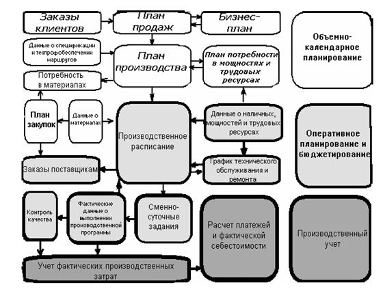 Рисунок 2. Взаимосвязь задач производственного планирования и учета