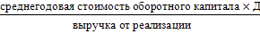 Сумма высвобожденных средств из оборота в связи с ускорением (-Э) или дополнительно привлеченных средств в оборот (+Э) при замедлении оборачиваемости капитала определяется умножением однодневного оборота по реализации на изменение продолжительности оборота: