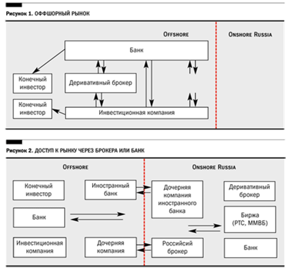 Таким образом, существует 3 основные схемы доступа к рынку производных на российские активы: