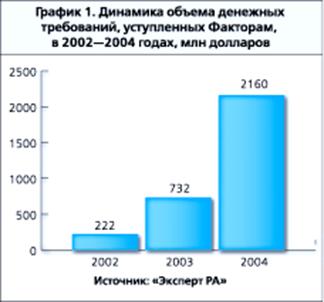 Прогноз выглядит реалистичным, учитывая, что по данным, приведенным агентством «Росбизнесконсалтинг», рынок факторинговых услуг в 2006 г. вырос на 102%. Рост на уровне арифметической прогрессии позволяет и компаниям-факторам, и их клиентам смотреть в будущее с большим оптимизмом.