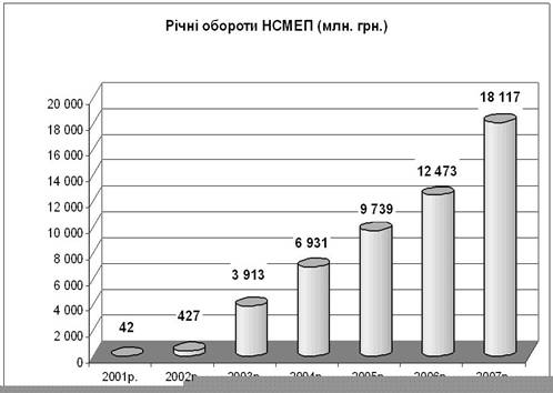 На кінець 2007 року наростаючі обороти НСМЕП перевищили відмітку 51,7 млрд. грн. Протягом року цей показник збільшився на 55%.